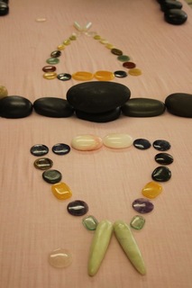 施術をする側は、石を滑らせる時、そして意図して身体の上や周りに石を配置する時にも、それらの表情を見ることができる喜びがあります。そして施術に用いた石を並べて施術を受けた方にも施術後に見ていただけるという喜びがあります。