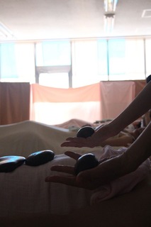 握ってみると、どことなくしっくりくるという石、お持ちの方は多いことでしょう。ストーンの施術では石を布を介して置いたりすることもありますが、直接、肌の上を滑らせたり置いたりすることもあります。温めた玄武岩がオイルを塗った肌の上に滑っていく感触は、”え、これがあの硬い石なの?”と信じられないような、熱伝導も相まって、何て気持ち良いのでしょう〜と感じます。常温や冷やした温度も、それが必要な箇所には ”待ってました!気持ち良い〜” と働きかけます。