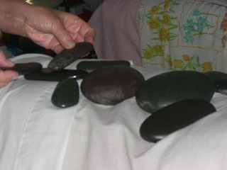 石の施術をする際、意図して石同士の音を出すこともあります。またお湯の中で石同士がぶつかりあって音がすることもあります。 石のおしゃべり、石の唄、石の囁き、 様々な音は聴覚を心地よく刺激するだけでなく、身体の深部に届かせる目的で意図して石同士のぶつかる音を出すこともあります。