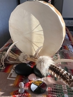 空と月のシャーマニックジャーニーは石も使いネイティブアメリカン・ドラムの音で誘導していきます。