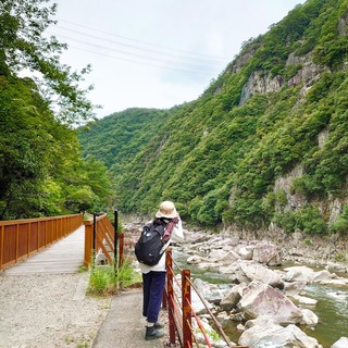 大きな岩がゴロゴロある川沿いを歩きなから廃線跡を歩いていきます。