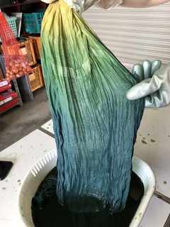 生藍と木肌でシルクのストールを染めました。