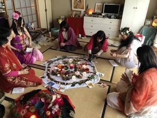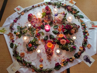 初めてプログラムの一部の担当させて頂き、みんなで太陽の形でもあるケルトのYear Wheel 花曼荼羅セレモニーをしました。